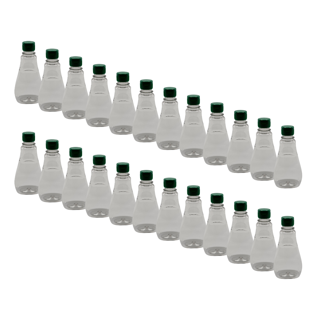 Kit com 100 Bisnagas PET Cristal de 250ml / 350g com Tampa Flip Top Verde – Para Embalagem de Mel