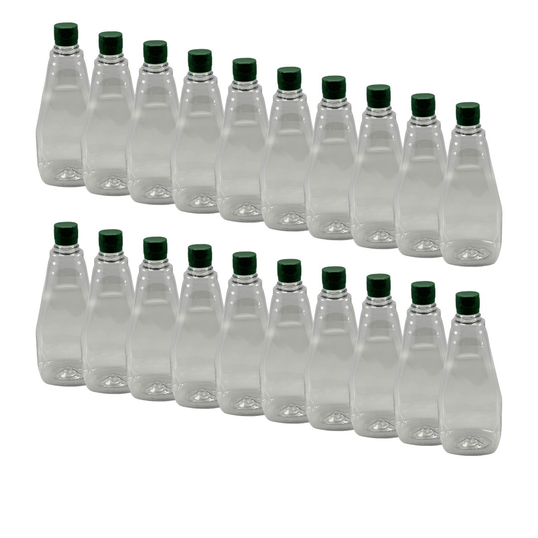 Este combo de 120 bisnagas de PET transparente é ideal para produtores e comerciantes de mel que precisam de embalagens funcionais e de alta capacidade. Com volume para até 750 ml ou 1050 gramas de mel, oferece excelente vedação e conservação do produto graças à tampa verde com selo de indução.