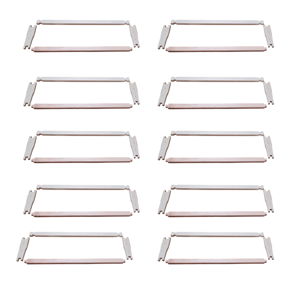 Conjunto com 10 quadros desmontados para melgueiras padrão Langstroth, ideal para apicultores que buscam praticidade e economia no transporte e na montagem.