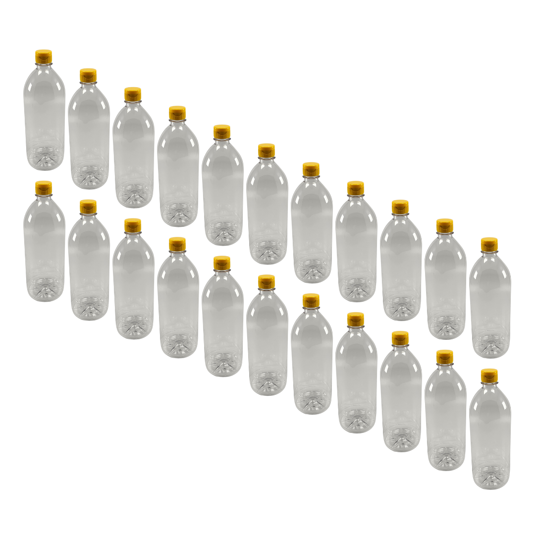Kit com 30 Garrafas PET Cristal 1 Litro – Tampa Fliptop Amarela com Selo de Indução