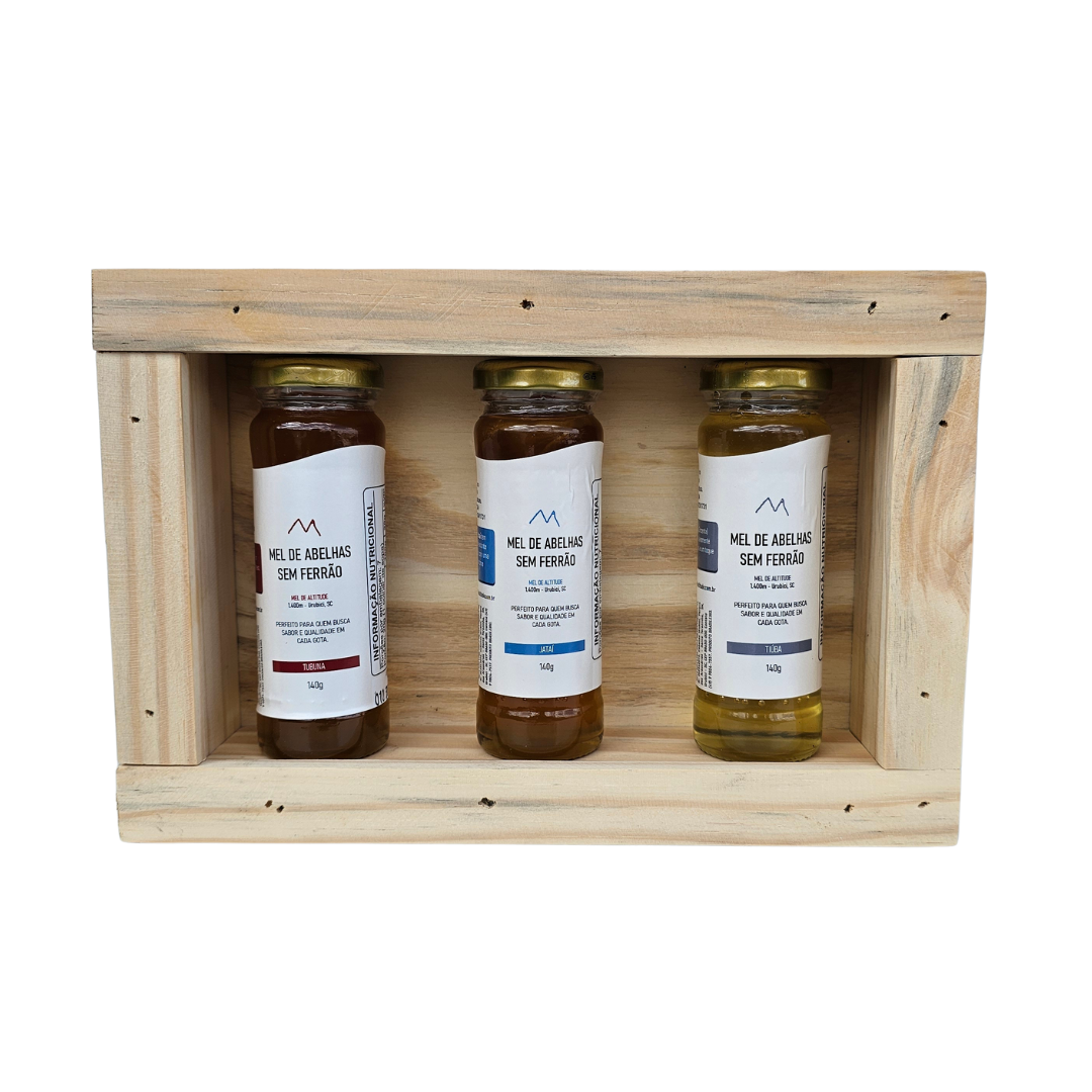 Descubra a riqueza dos sabores da meliponicultura brasileira com este kit especial, que reúne três variedades puras de mel produzido por abelhas nativas sem ferrão. Uma verdadeira experiência sensorial em frascos de 140g cada.