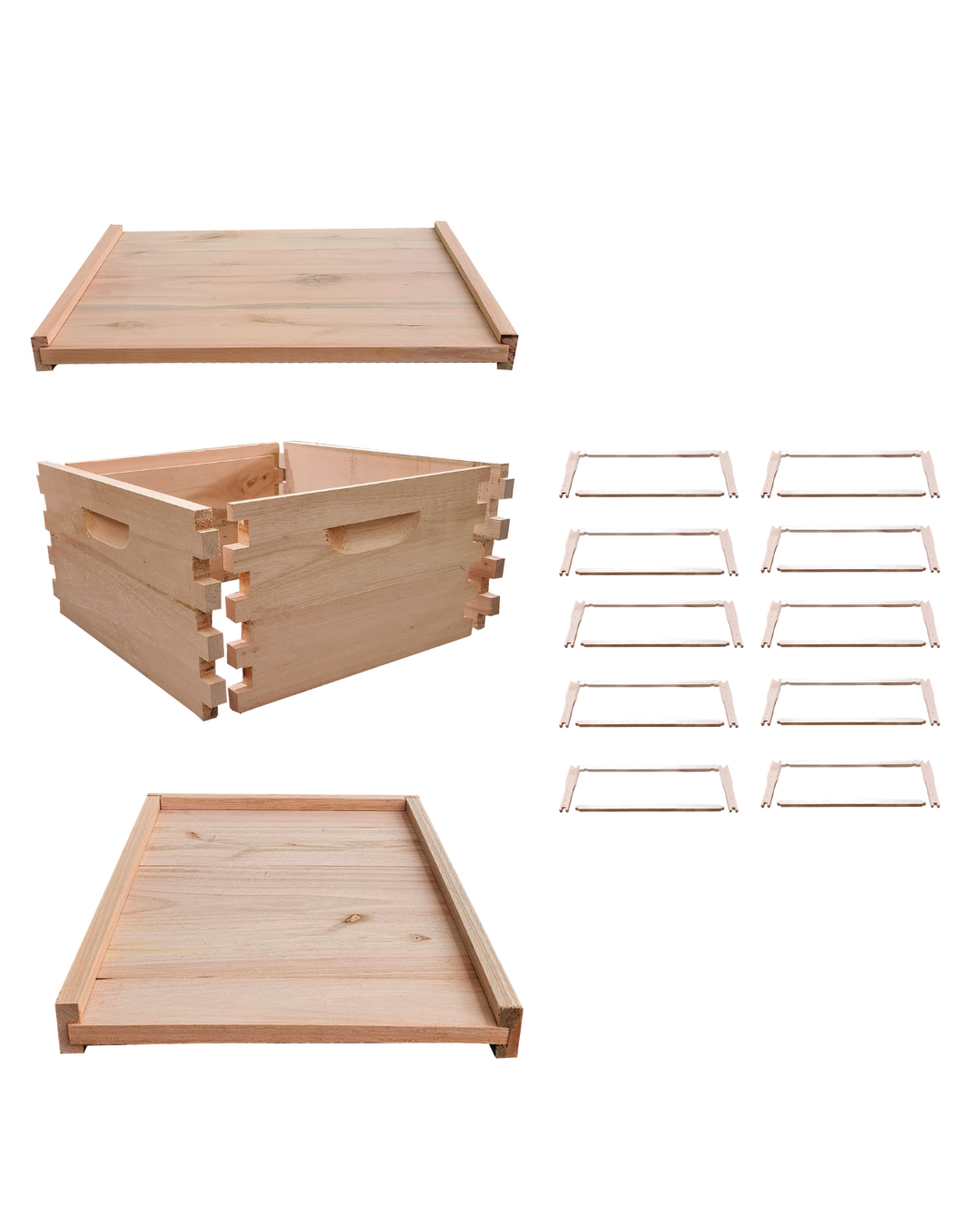 Ninho Desmontado com Fundo, Quadros e Tampa – Padrão Langstroth em Eucalipto